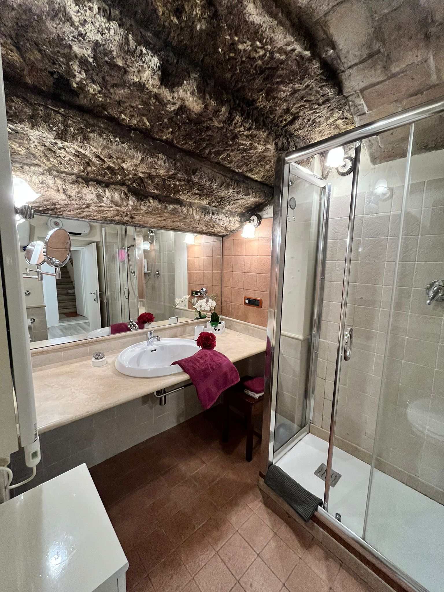 Armonia Family is the last in order of construction. It is a room that stands out from the others, for its modern and chic style, overlooking the garden and equipped with an internal bathroom with a characteristic cave ceiling, having been created in the ancient family wine shop. Spacious and with a contemporary design, Armonia is suitable for a family or a group of four people as it is equipped with a double bed and a comfortable and large two-seater sofa bed.